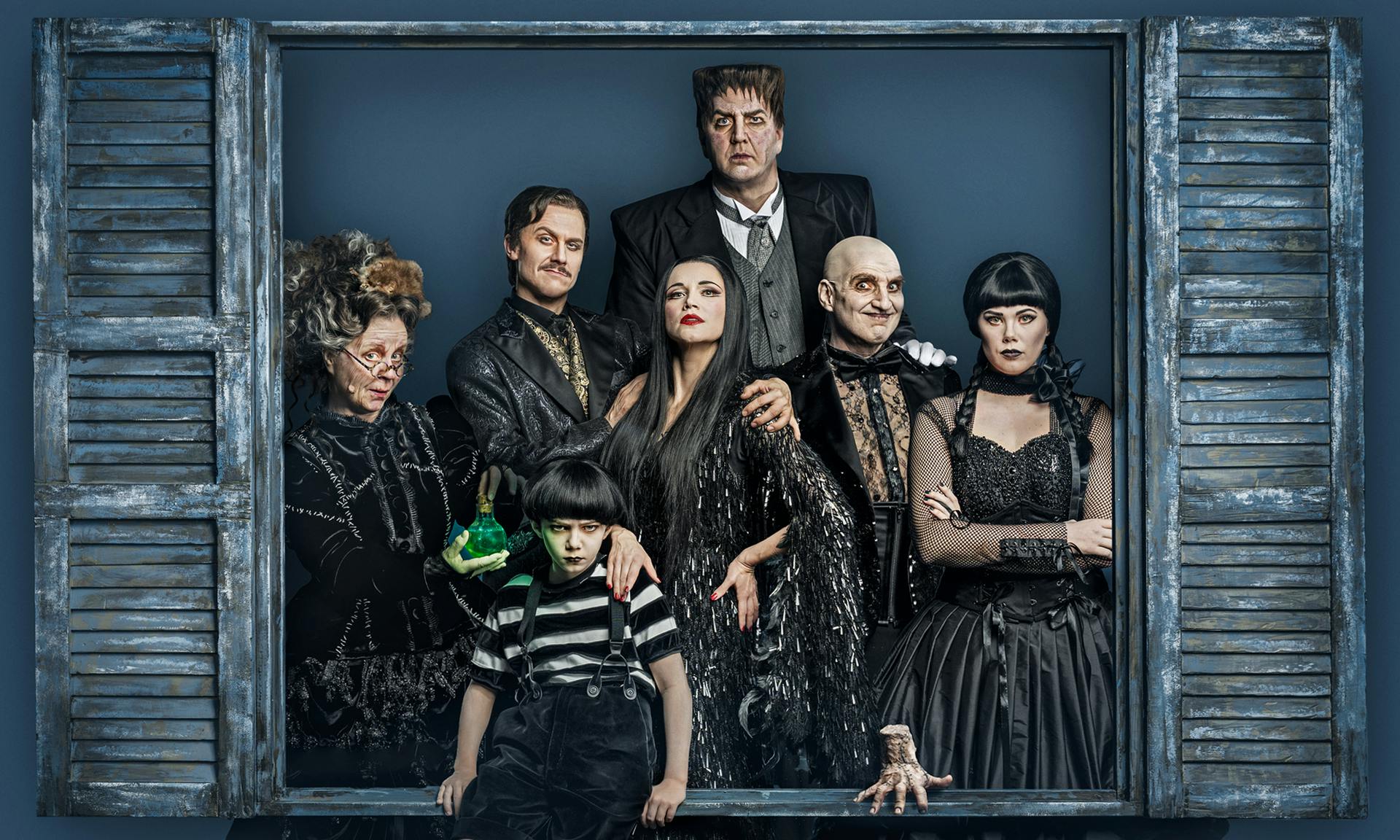 The Addams Family on alun perin Charles Addamsin sarjakuvana ilmestynyt tarina synkistelyyn ja suoranaiseen makaaberiuteen taipuvasta perheestä. Sen jäsenet elävät palvelijoiden ja kummittelevien esi-isien keskellä kartanossaan välittämättä muissa ihmisissä herättämästään oudoksunnasta ja pelosta. Sittemmin tämä ylpeästi omanlaisensa perhe on tullut tunnetuksi televisiosarjoina, elokuvina, videopeleinä, fanituotteina – ja fantastisen viihdyttävänä musikaalikomediana.